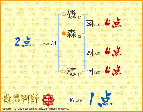 磯森穂さんの総運は46画の1点!