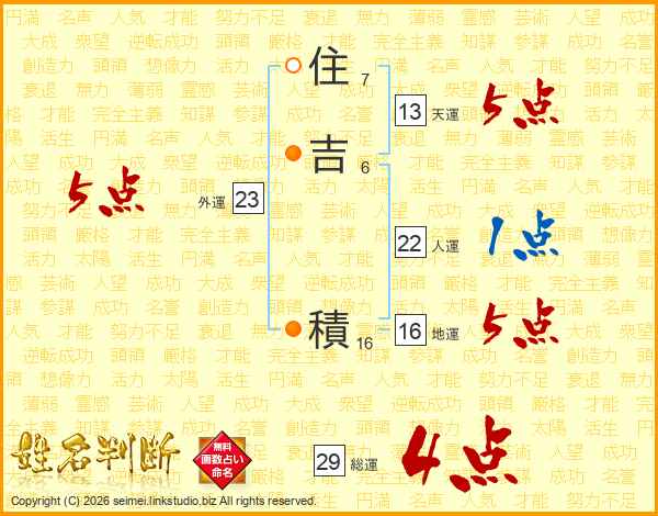 住吉積さんの総運は29画の4点