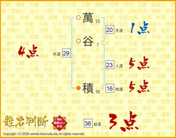 萬谷積さんの天運は20画の1点!