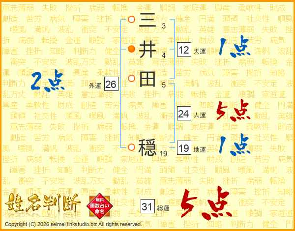 三井田穏さんの総運は31画の5点!