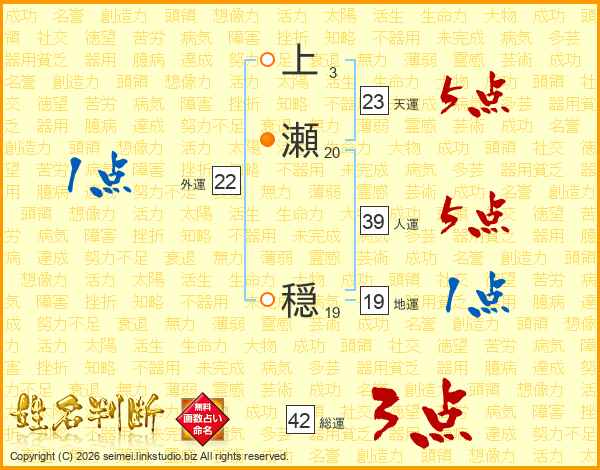 上瀬穏さんの人運は39画の5点!