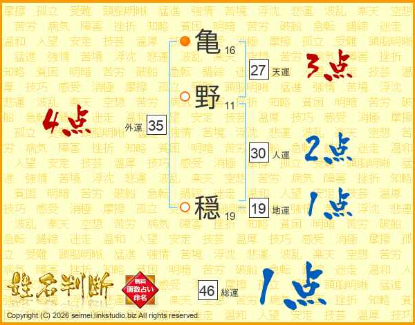 亀野穏さんの地運は19画の1点!