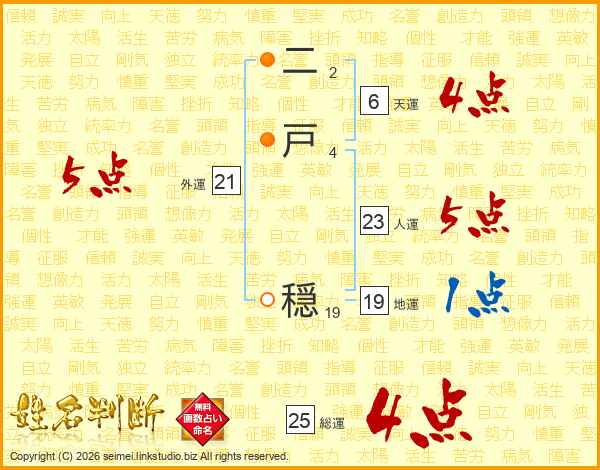 二戸穏さんの総運は25画の4点!