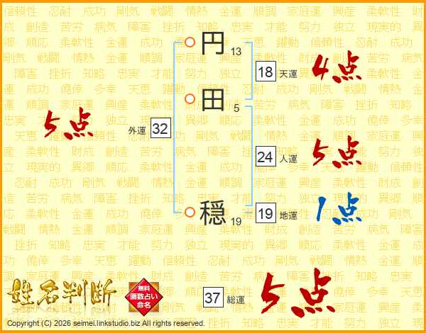 円田穏さんの総運は37画の5点!