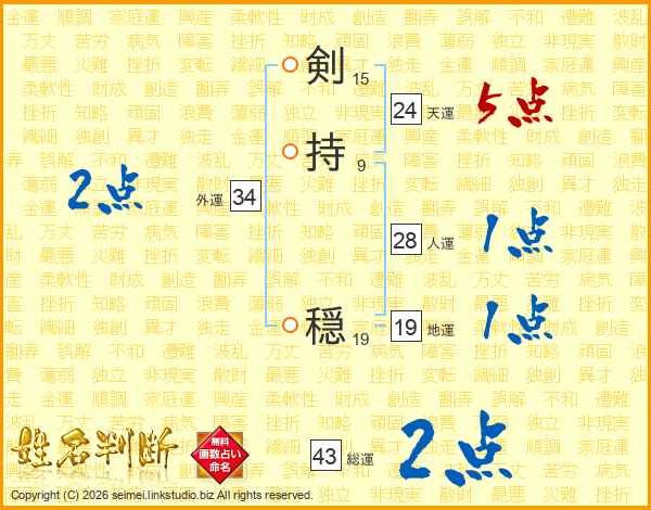 剣持穏さんの総運は43画の2点!