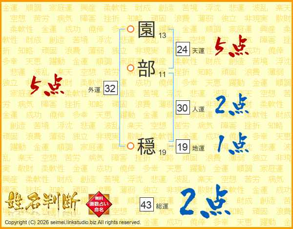 園部穏さんの人運は30画の2点!