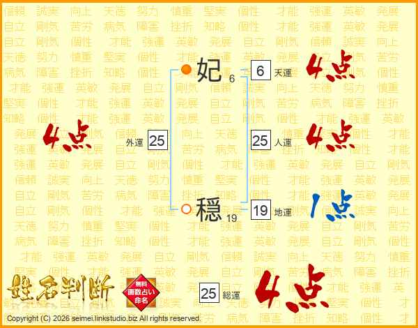 妃穏さんの人運は25画の4点!