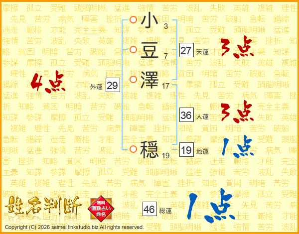 小豆澤穏さんの総運は46画の1点!
