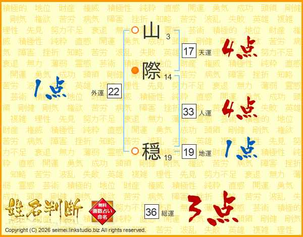 山際穏さんの人運は33画の4点!