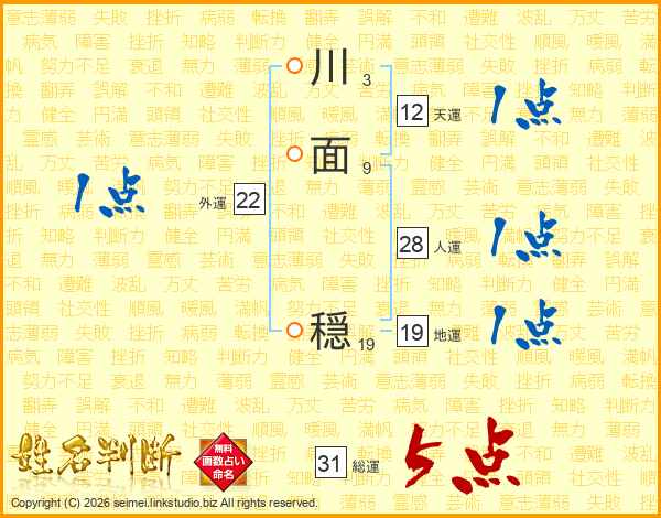 川面穏さんの総運は31画の5点!