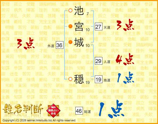 池宮城穏さんの総運は46画の1点!