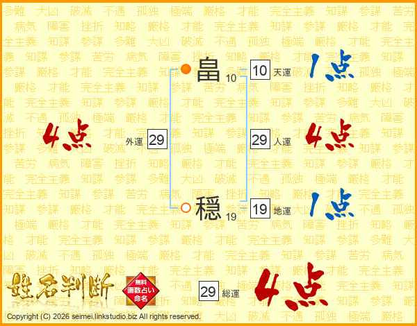 畠穏さんの総運は29画の4点!