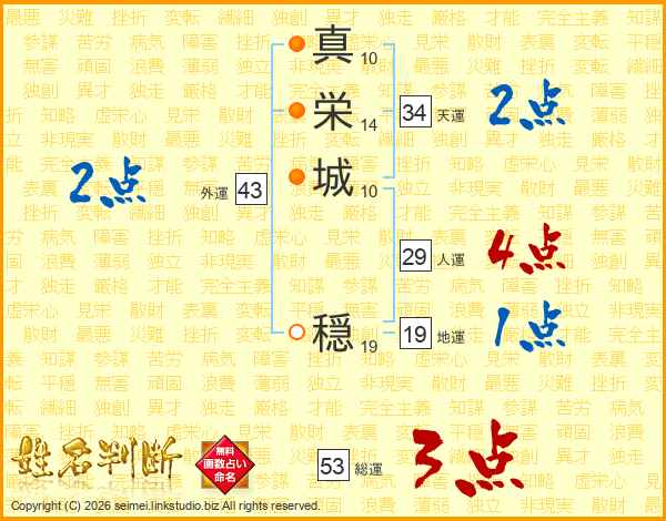 真栄城穏さんの総運は53画の3点!