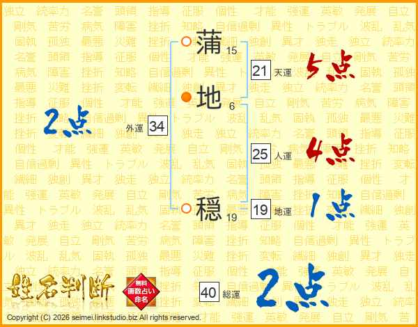 蒲地穏さんの天運は21画の5点!