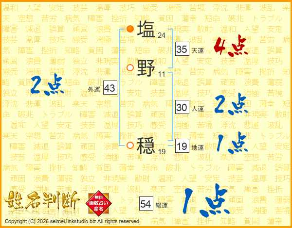 塩(24画)野(11画) 穏(19画)