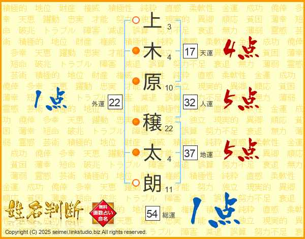 上木原穣太朗さんの地運は37画の5点!