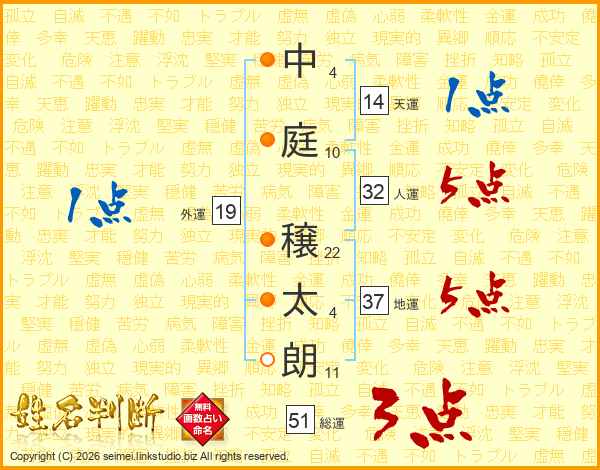 中庭穣太朗さんの地運は37画の5点!