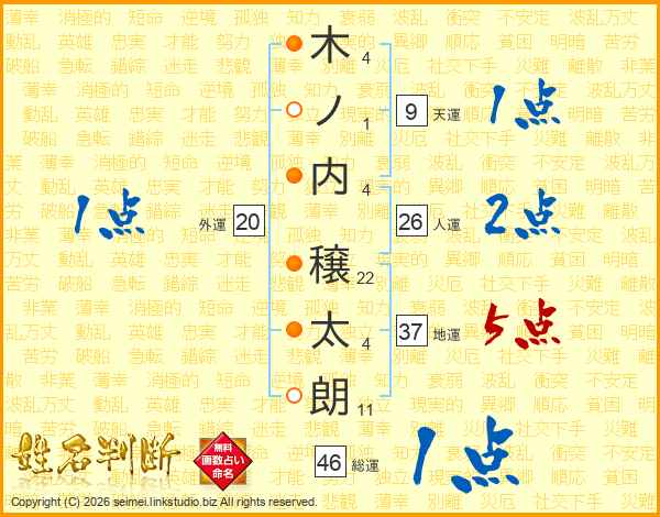 木ノ内穣太朗さんの総運は46画の1点!