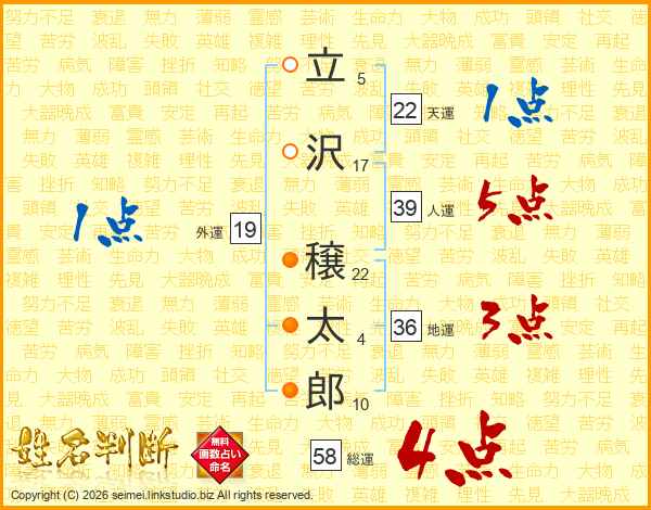立沢穣太郎さんの総運は58画の4点!