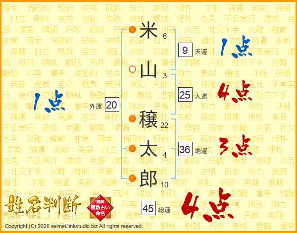 米(6画)山(3画) 穣(22画)太(4画)郎(10画)