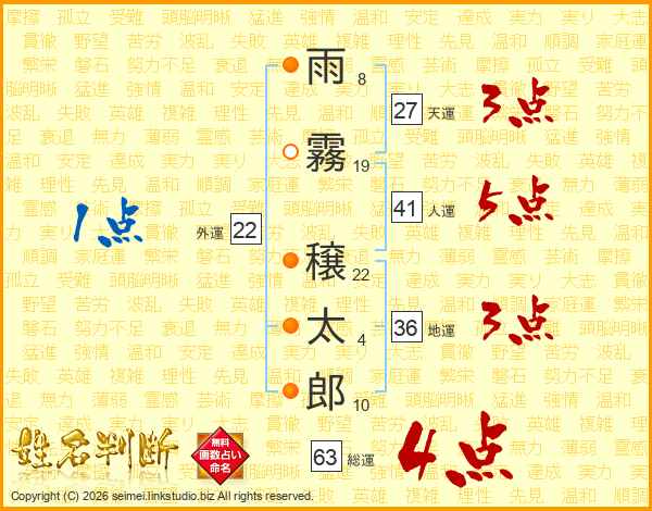 雨霧穣太郎さんの総運は63画の4点!