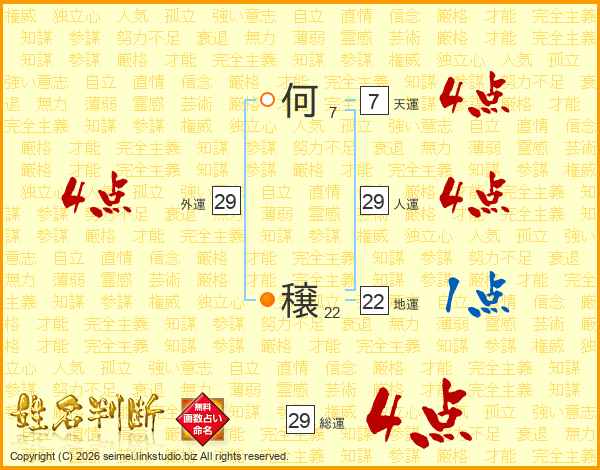 何穣さんの総運は29画の4点!