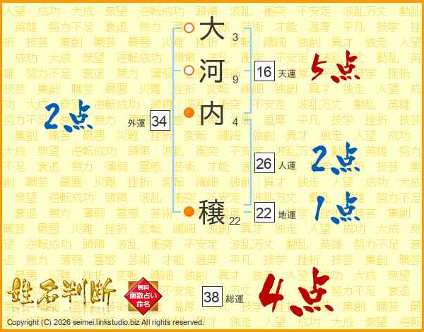 大河内穣さんの総運は38画の4点!