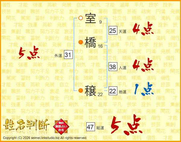 室橋穣さんの総運は47画の5点!