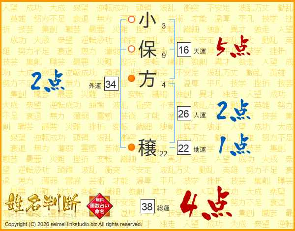 小保方穣さんの総運は38画の4点!