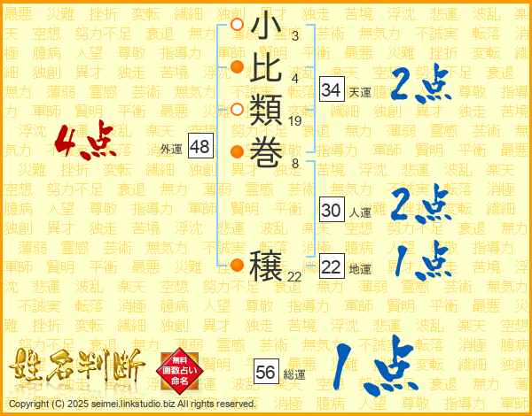 小(3画)比(4画)類(19画)巻(8画) 穣(22画)