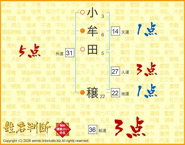 小牟田穣さんの総運は36画の3点!