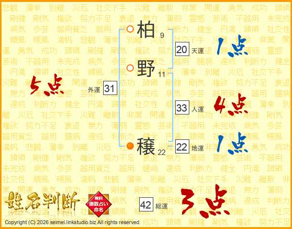 柏野穣さんの人運は33画の4点!