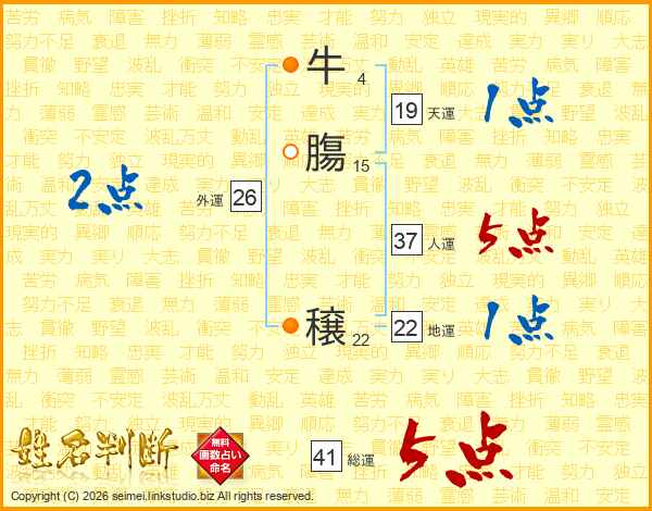 牛膓穣さんの総運は41画の5点!