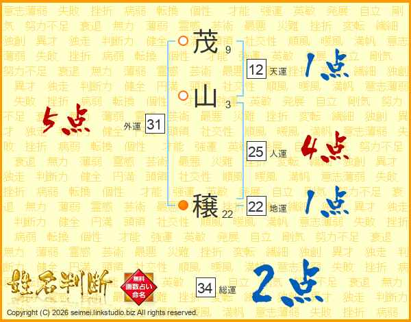 茂(9画)山(3画) 穣(22画)