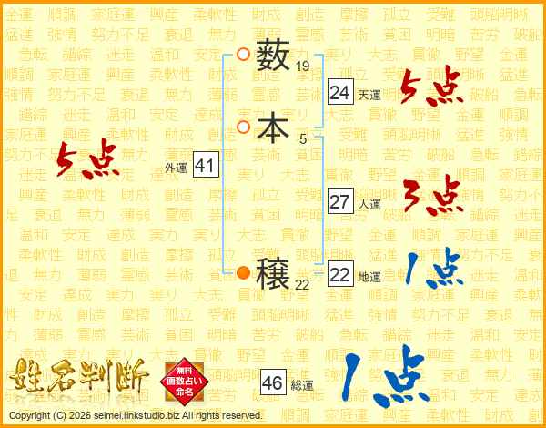 薮本穣さんの人運は27画の3点!