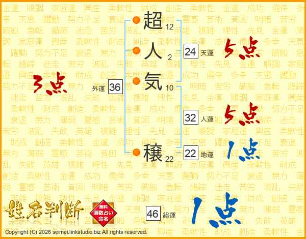 超人気穣さんの総運は46画の1点!