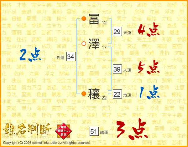 冨澤穰さんの総運は51画の3点!