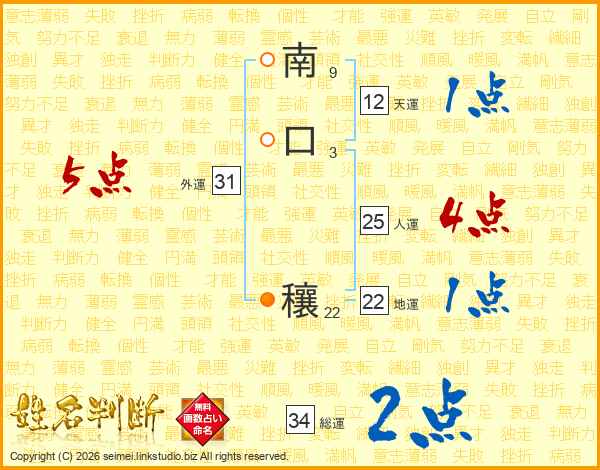 南口穰さんの人運は25画の4点!