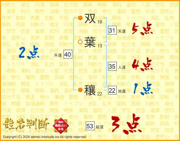 双葉穰さんの総運は53画の3点!