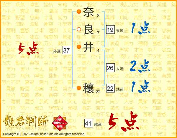 奈良井穰さんの総運は41画の5点!