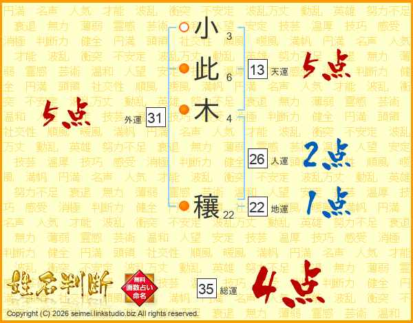 小此木穰さんの総運は35画の4点!