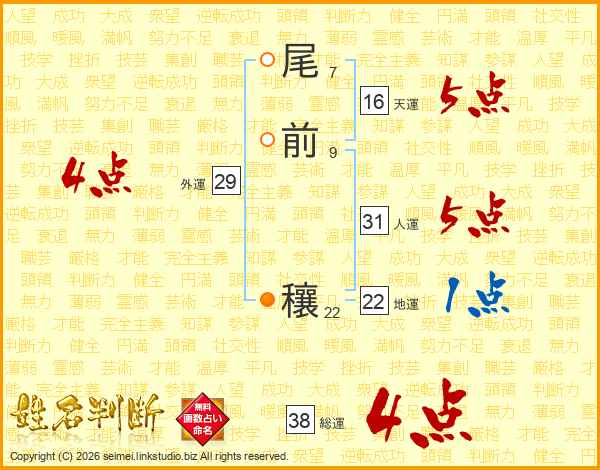 尾前穰さんの総運は38画の4点!