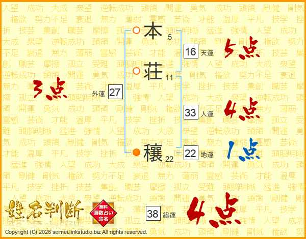 本荘穰さんの人運は33画の4点!