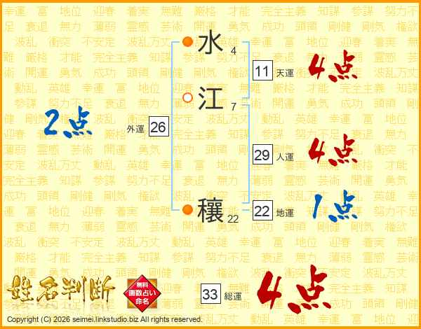 水江穰さんの総運は33画の4点!