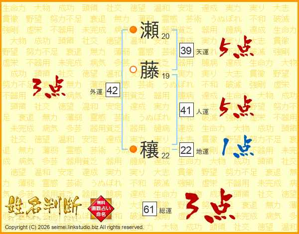 瀬藤穰さんの総運は61画の3点!