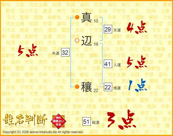 真辺穰さんの総運は51画の3点!