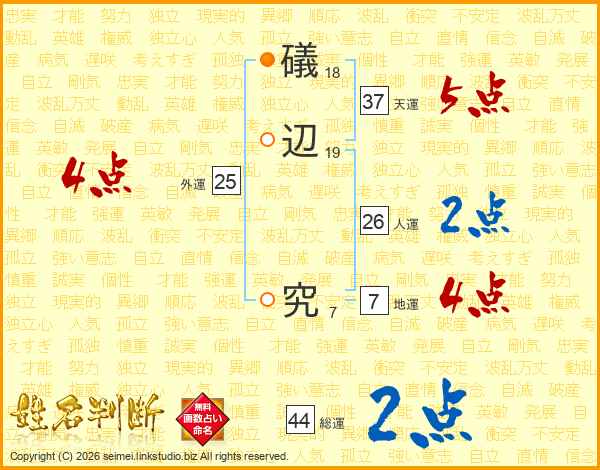 礒辺究さんの総運は44画の2点!