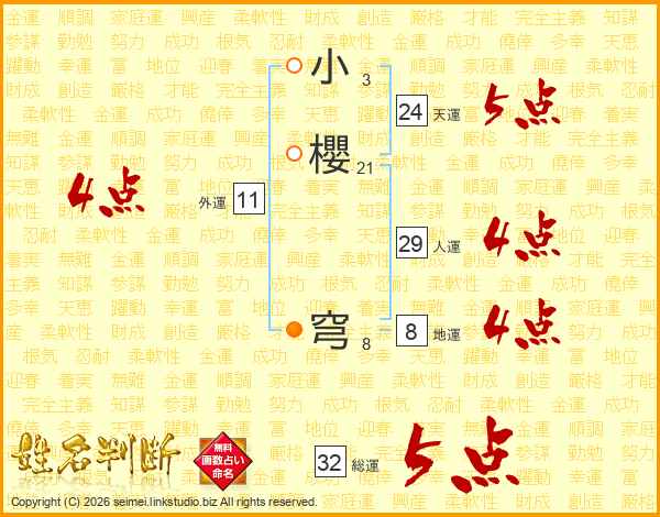小櫻穹さんの総運は32画の5点!