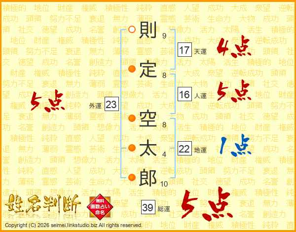 則定空太郎さんの総運は39画の5点!