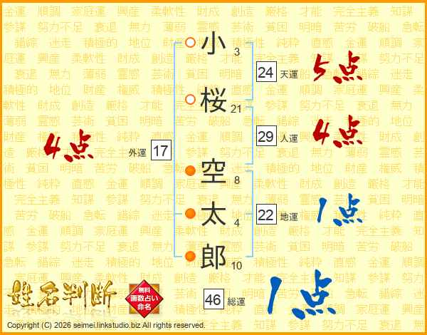小桜空太郎さんの総運は46画の1点!